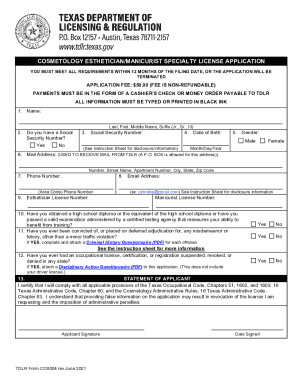 Cos004 Cosmetology Esthetician Manicurist Specialty License Application Fill Out And Sign Printable Pdf Template Signnow